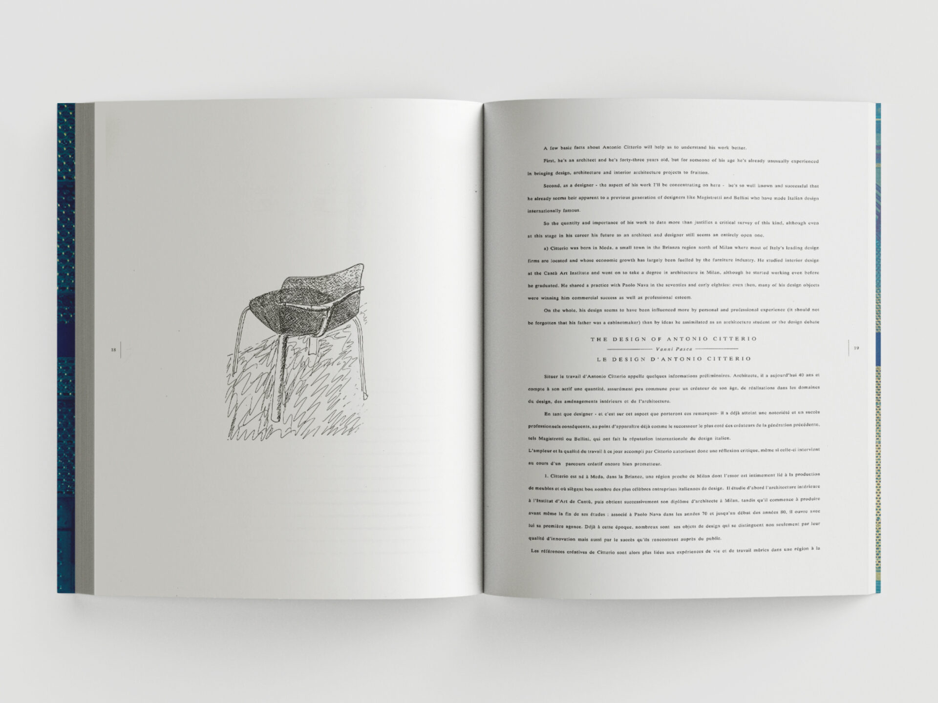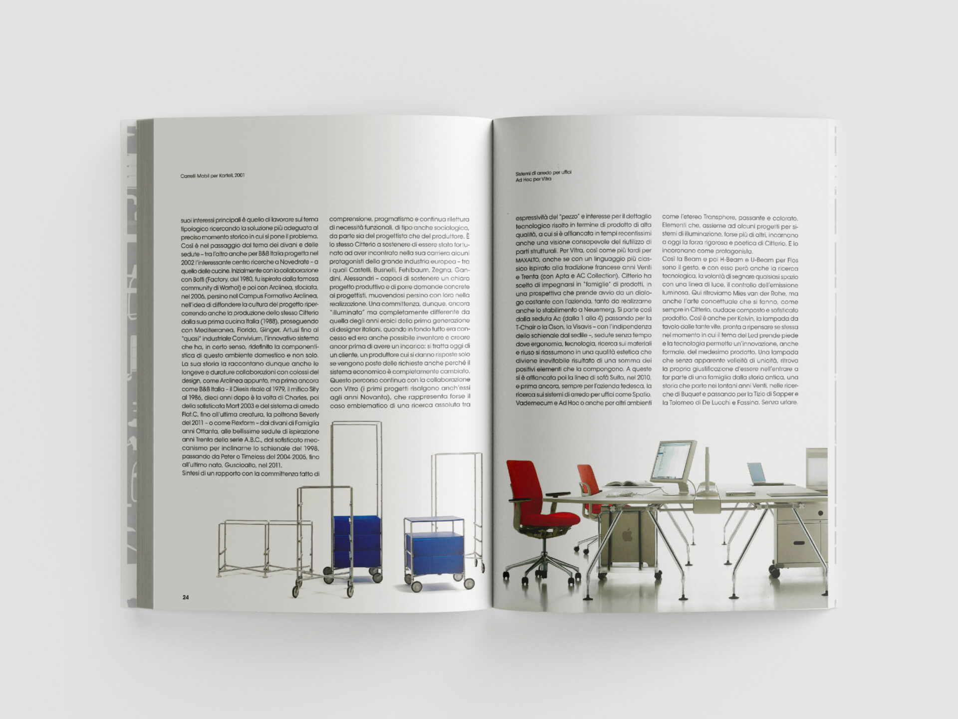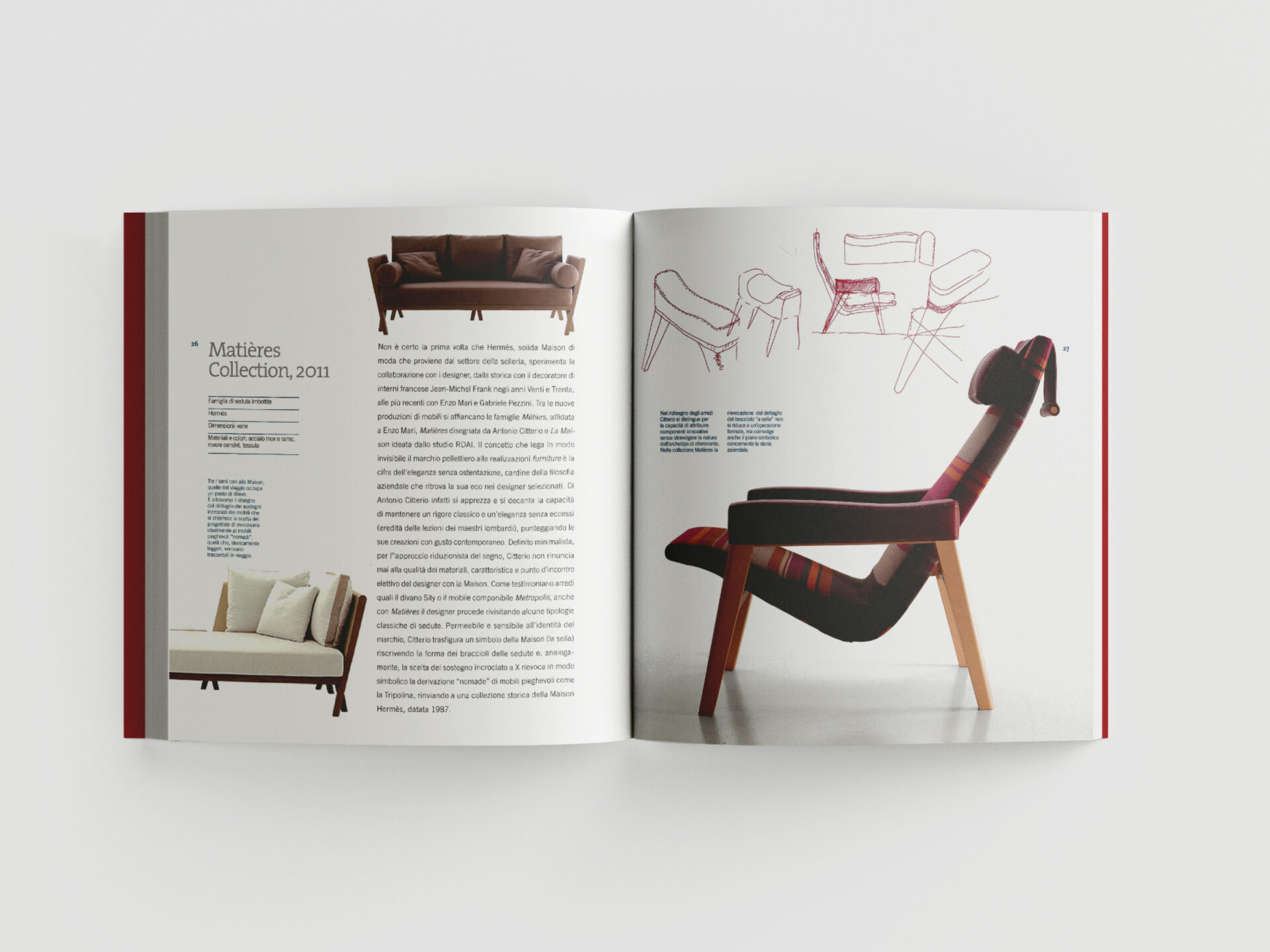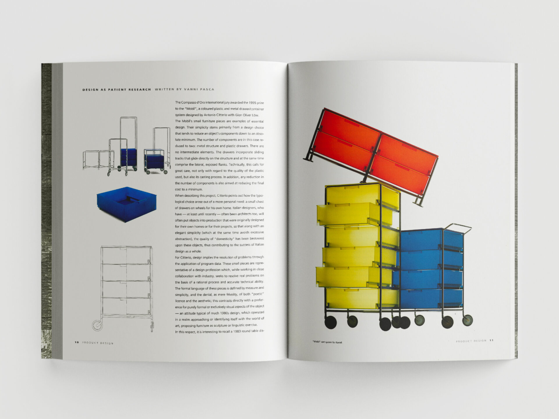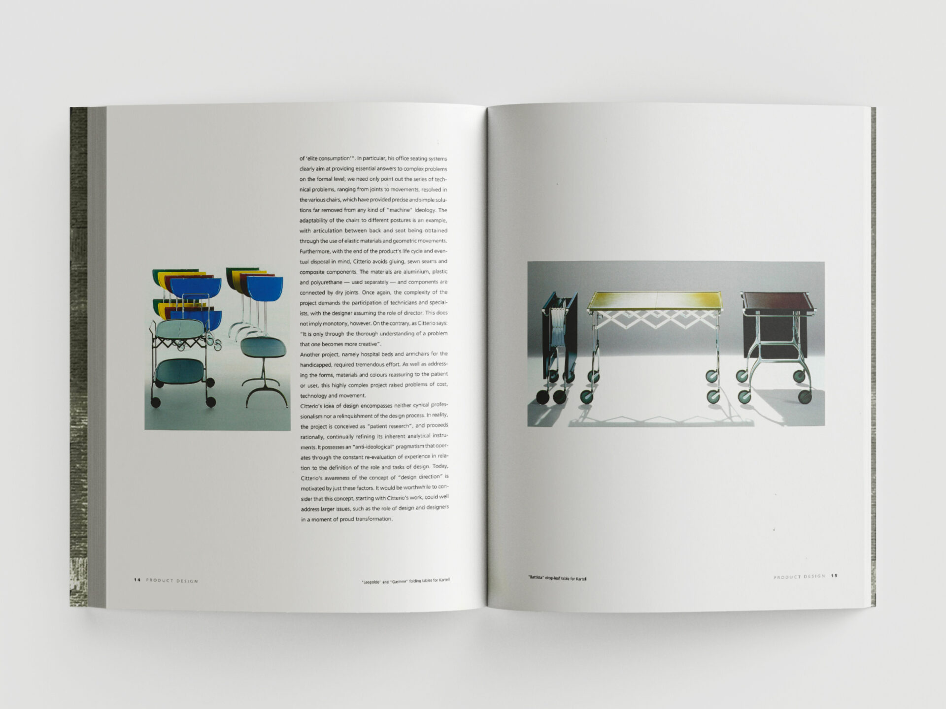 The book features a foreword and an introduction by architect and designer Andrea Branzi and by art critic Francesco Bonami, and its authors include writers Stefano Casciani, Francesca Picchi, and former director of London’s Design Museum, Deyan Sudjic (also the book’s editor). The writing offers a comprehensive and detailed account of works that, in a 50-year career of more than 600 products in a wide range of fields, share a stylistic code that combines a discreet and elegant modernity with a meticulous attention to detail.