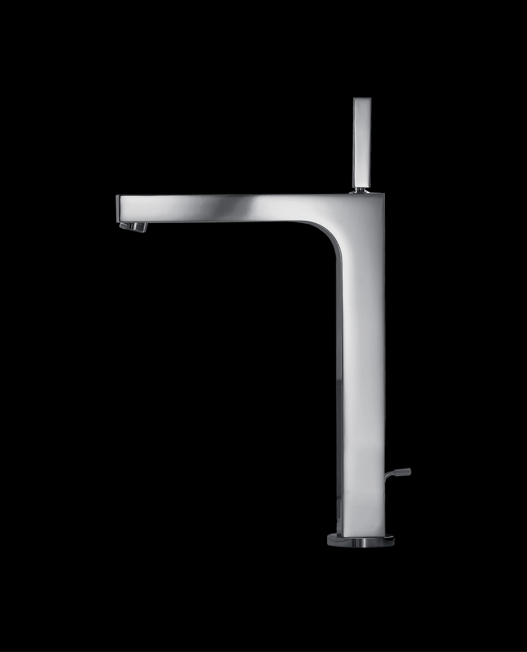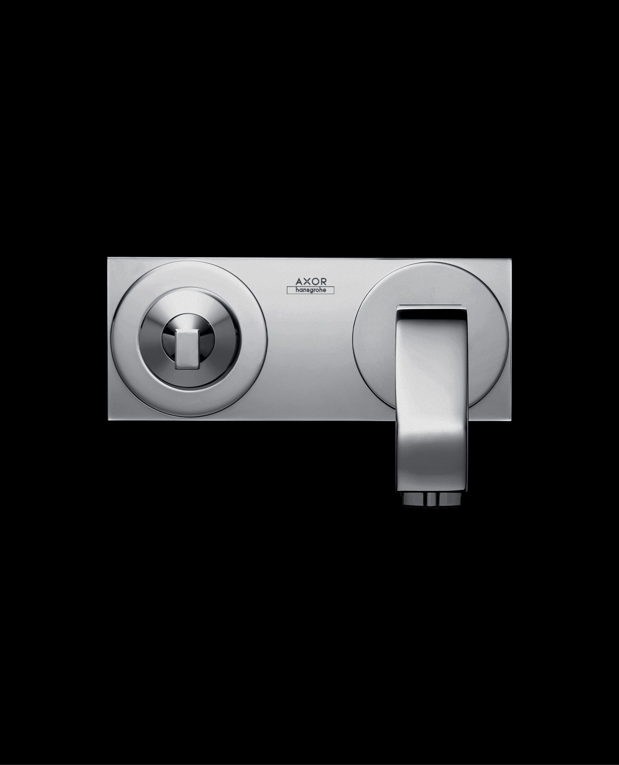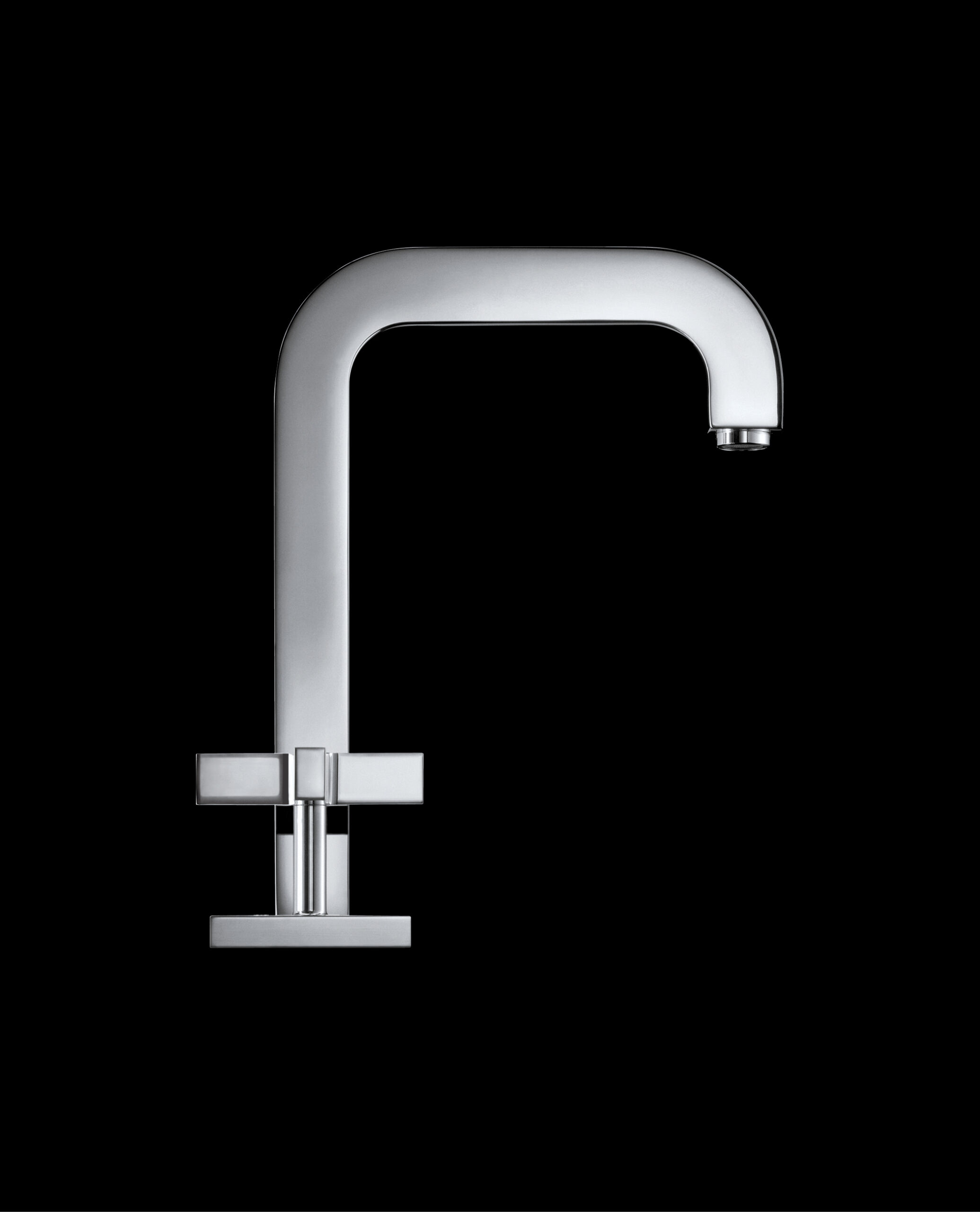 The first collection for Axor translates the logic of water mixing into a visible, geometric form. Squared brass bodies and polished surfaces express manufacturing precision, while the joystick control defines a tactile, intuitive interaction with water.