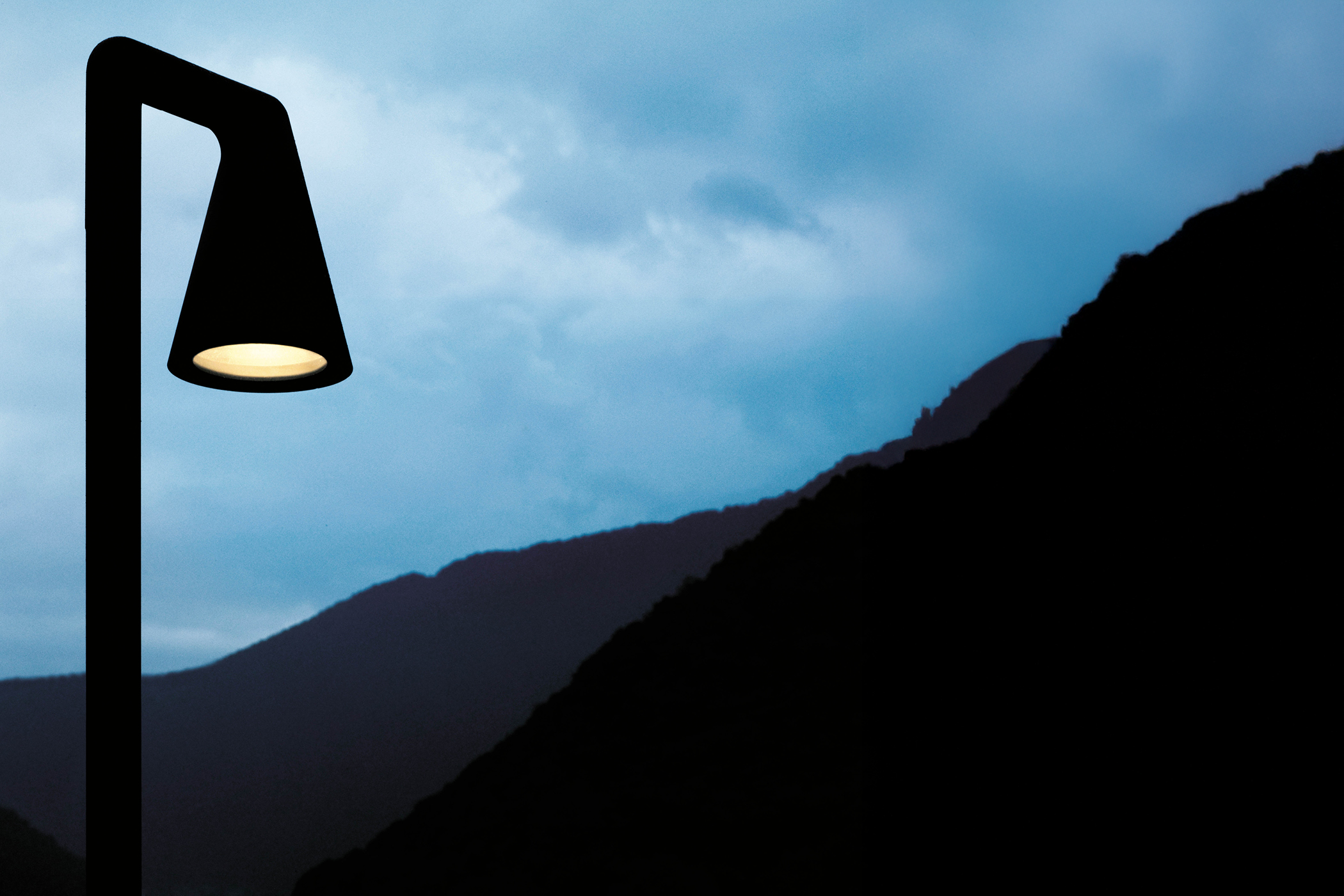 Outdoor lighting system designed to minimise visual impact in natural settings. Shaped from a single curved tube recalling plant growth, the collection integrates with gardens and landscapes, treating light as a spatial and structural element.