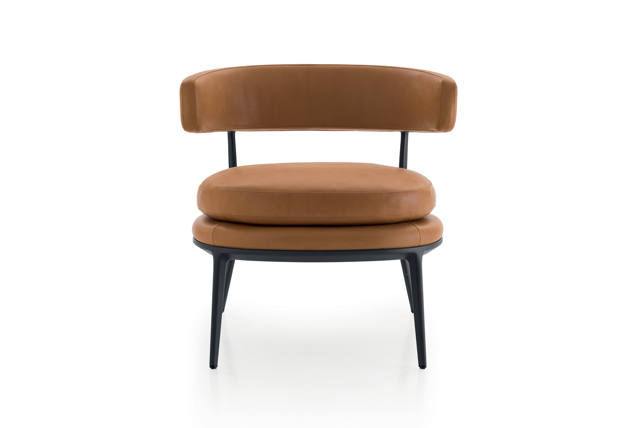 Chair collection built around a die-cast aluminium frame with an upholstered shell. The project introduces industrial casting techniques into the Maxalto world, merging precision manufacturing with the tactile richness of leather and the sculptural depth of twentieth-century references.