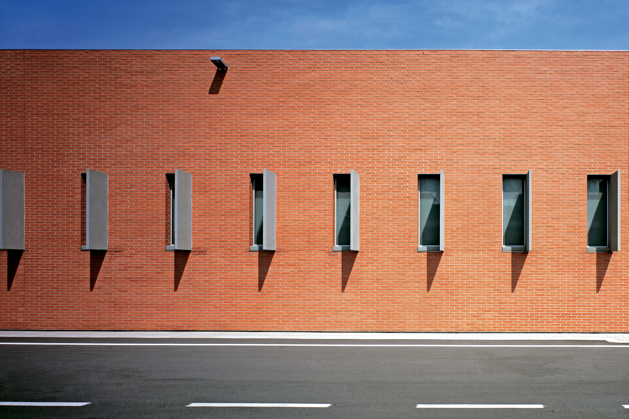 Corporate headquarters for fabric manufacturer Eurojersey: existing office and industrial buildings unified under a continuous curved metal roof. Renovations and extensions redefine façades and connections, combining brick, stone, and metal in a coherent architectural language.
