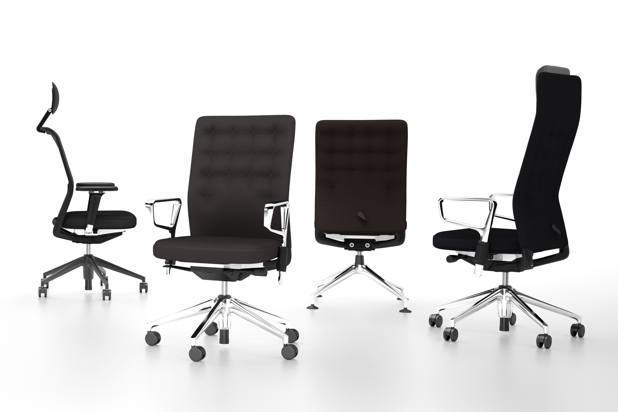 Office seating system conceived as an open platform rather than a single model. Based on a central mechanical core connecting interchangeable components, it allows multiple configurations combining ergonomics, materials, and aesthetics. The modular logic also extends the product’s lifespan through replaceable parts.
