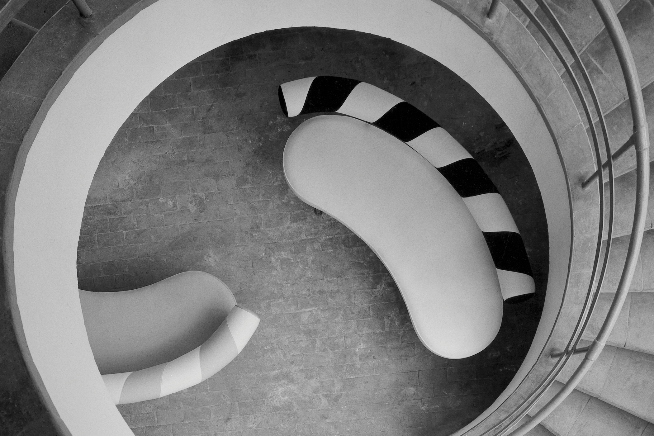 A sculptural sofa with a tubular frame, bean-shaped seat, and cylindrical back. Optical versions and Gabriele Basilico’s campaign established its enduring presence in the design landscape.